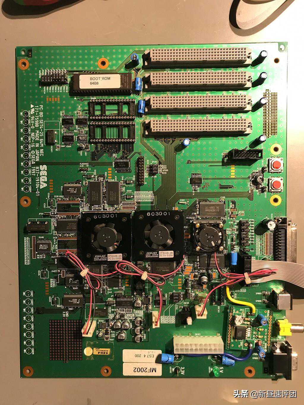 在考虑了包括IBM的PowerPC系列在内的几种不同处理器之后,世嘉DreamCast使用的是Saturn所使用的日立Super-H架构,其中经过改进的处理器SH-4成为了设计定档的处理器,这一个架构可以操作基于3dfxVoodoo2的GPU使得DreamCast展现出不俗的图形处理能力,下面这一张就是开发机的主板