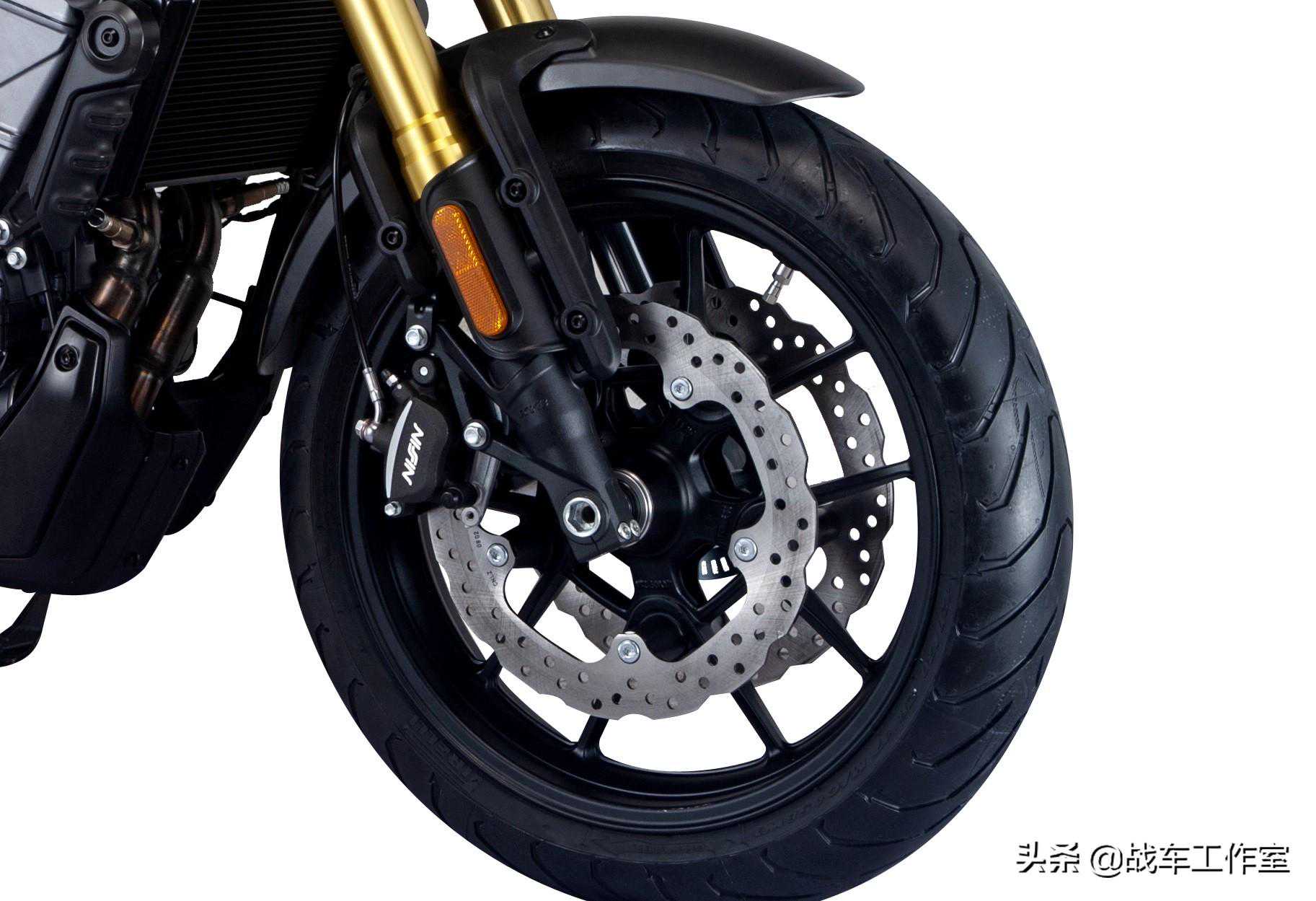 KYB倒立避震、日信制动、博世ABS、滑动离合等配置的使用,算是国内目前同级别复古车型里面,中上的配置。全新改良后的KE500引擎,相信在稳定性的表现上,不会有太多瑕疵问题。
