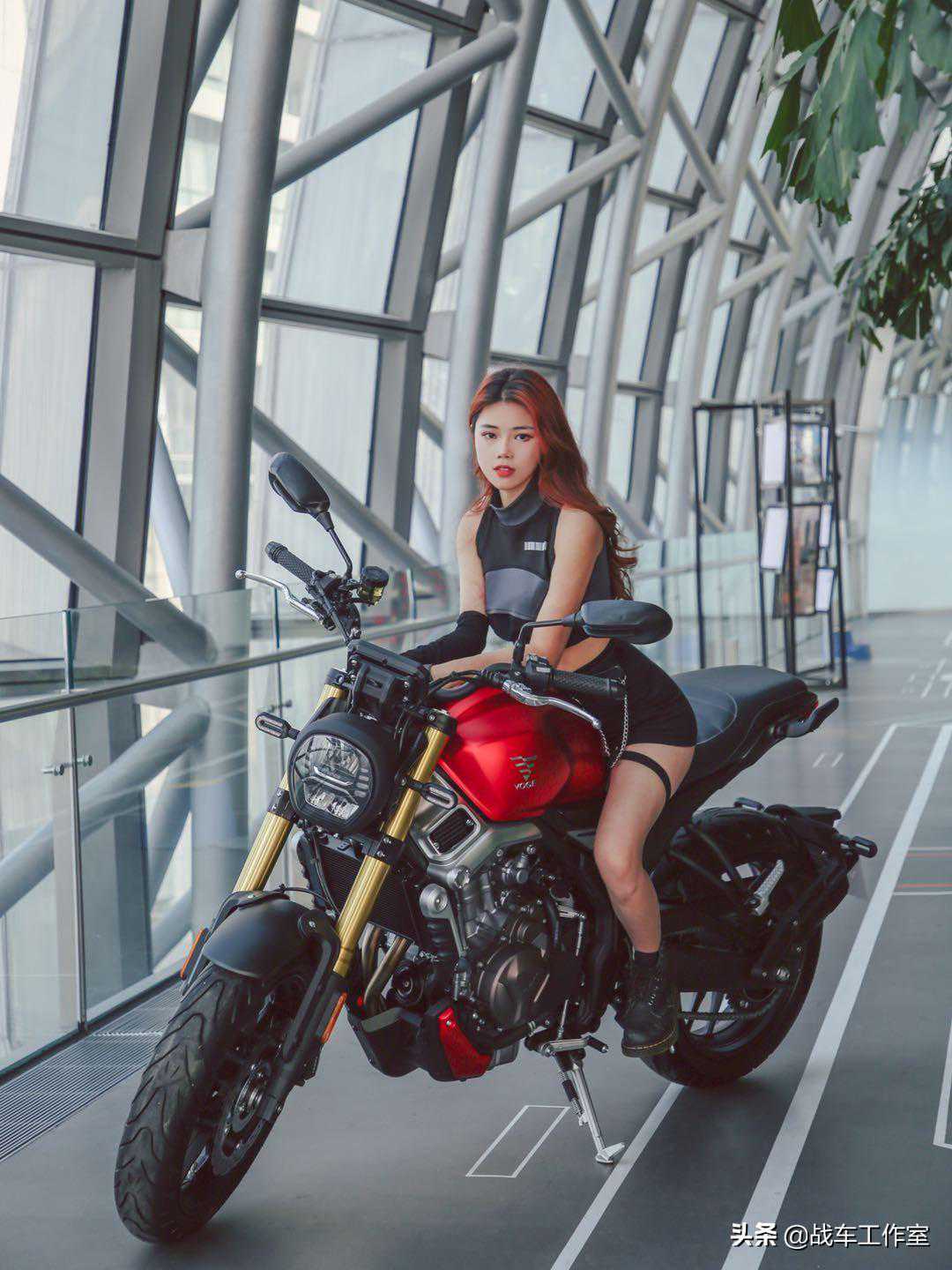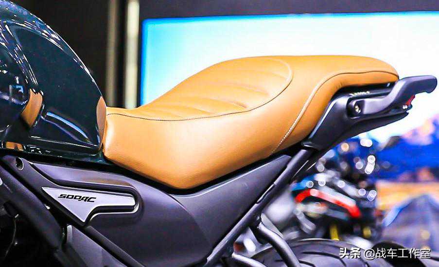 AC500的更大排量的引擎和油箱前部装饰壳、发动机下肚兜,这几处地方设计已形成自己风格。