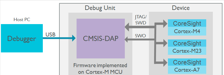 CMSIS-DAP支持各种Cortex处理器CoreSight调试和跟踪。