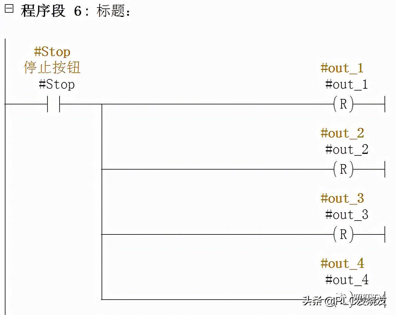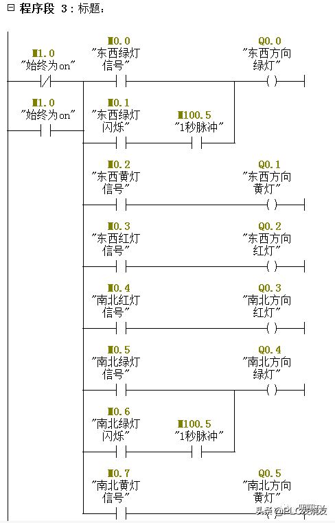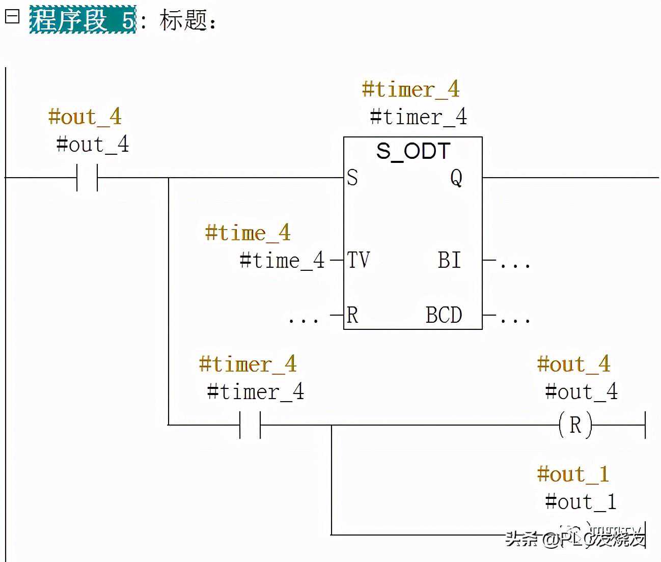 3、分析:不管是东西,还是南北,都是4个状态,因此只需要编写一个FB,重复调用即可。每个状态里都有个定时器,和其设定的时间,一个中继M表示一个输出。