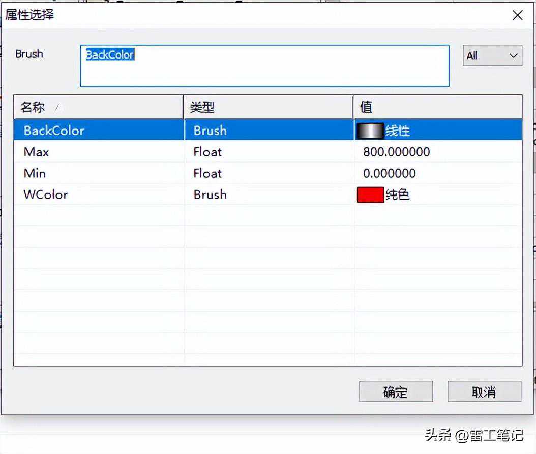 按照这种方式我们可以再定义三个属性,温度指示颜色:WColor,类型:Brush;温度量程的最大值:Max,最小值Min,类型Float。
