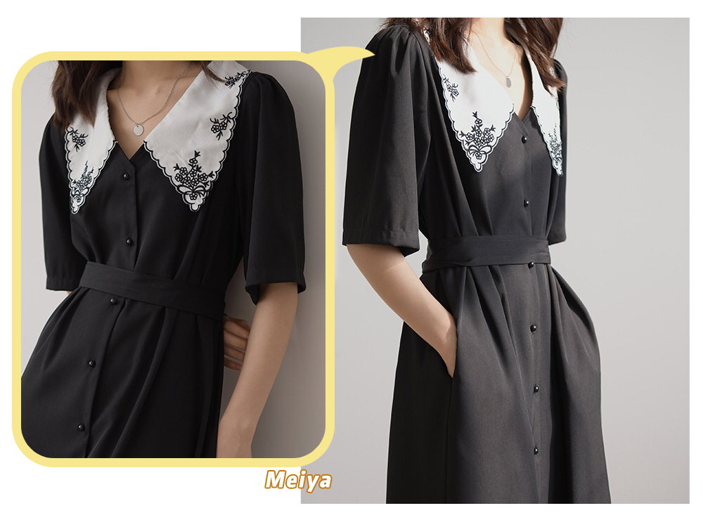 如果要芽芽选择一条既乖巧又气质,既减龄又有女人味的裙子,那么芽芽一定会选择娃娃领连衣裙。和挤奶裙一样,它也是喜欢在领口做文章。