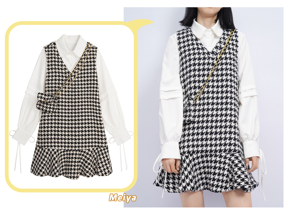 除了碎花以外,波点和千鸟格也是属于秋天的复古印花元素,但注意啦,如果裙子本身已经比较花哨的话,搭配的单品就一定要简约,否则会给人眼花缭乱的感觉。