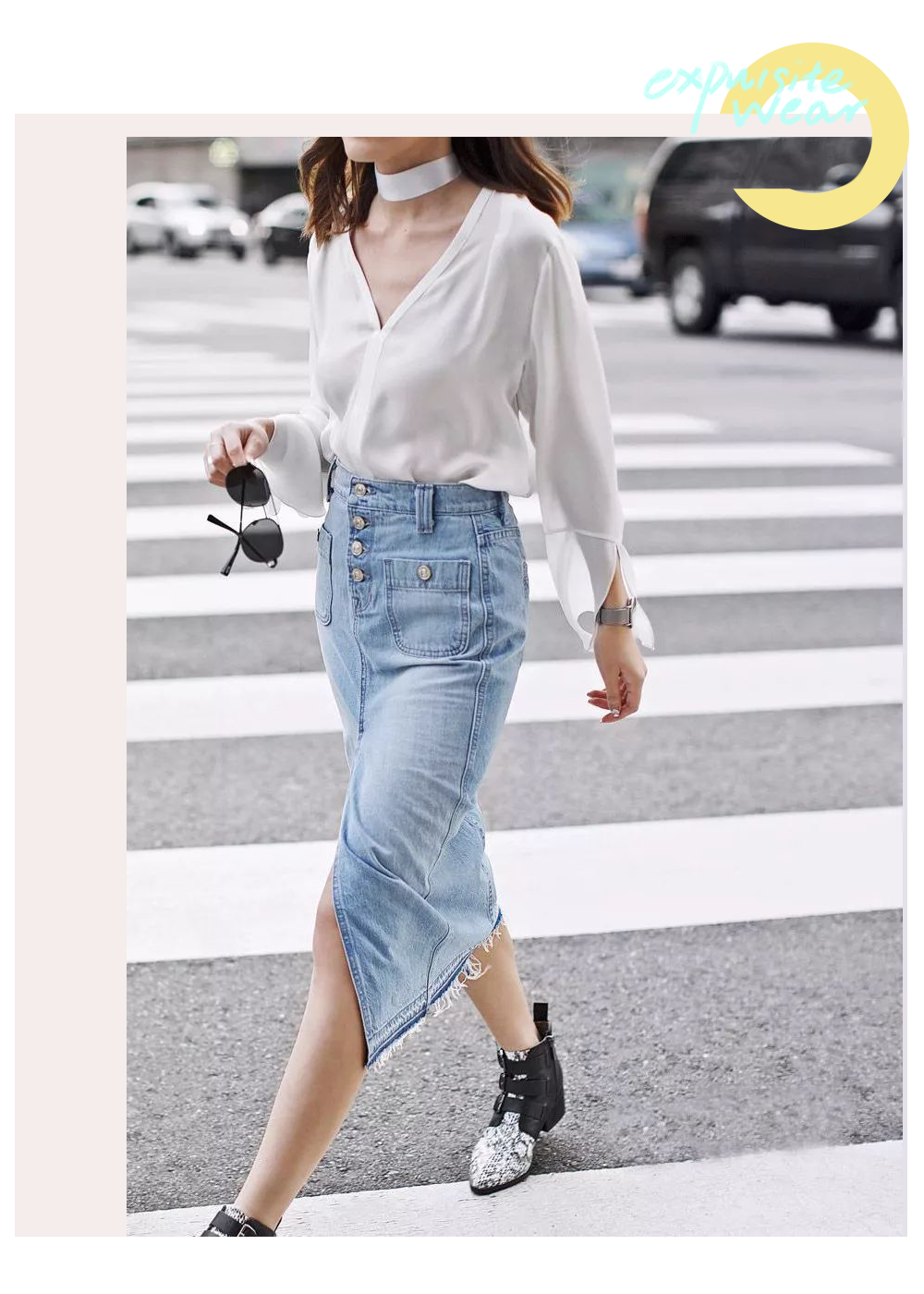 而喜欢休闲风格的女孩可以试试牛仔半身裙,尤其是侧边开衩的款式,能让腿显得更修长。