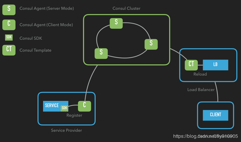 所幸通过ConsulTemplate,可以定时从Consul集群获取最新的服务提供者列表并刷新LB配置(比如nginx的upstream),这样对于服务调用者而言,只需要配置一个统一的服务调用地址即可。