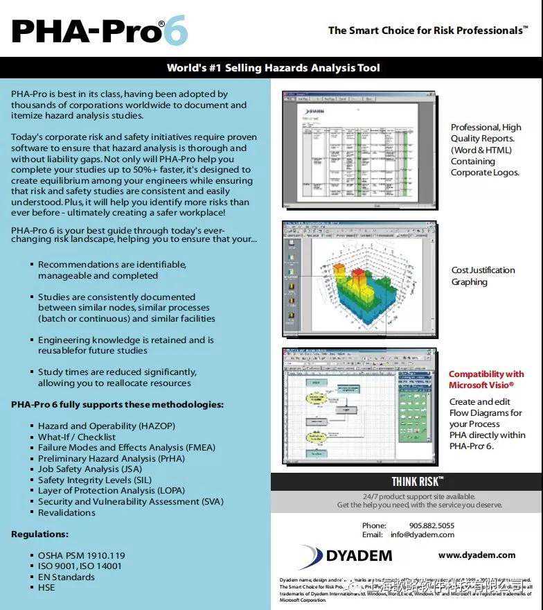 而自定义分析模板带来的价值之一就是,可以通过一套软件,实现诸如JSA、HAZOP、LOPA、FMEA、HACCP、SVA等之类的分析方法,而当时的Dyadem,也因此同时推出了多款产品,比如RiskSafe(主要是做JSA分析),PHA-Pro,FTA-Pro,FMEA-Pro,FMEA-Med(针对医疗行业的FMEA),SVA-Pro等产品。