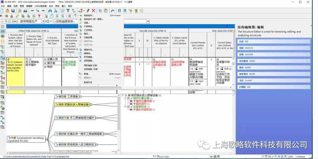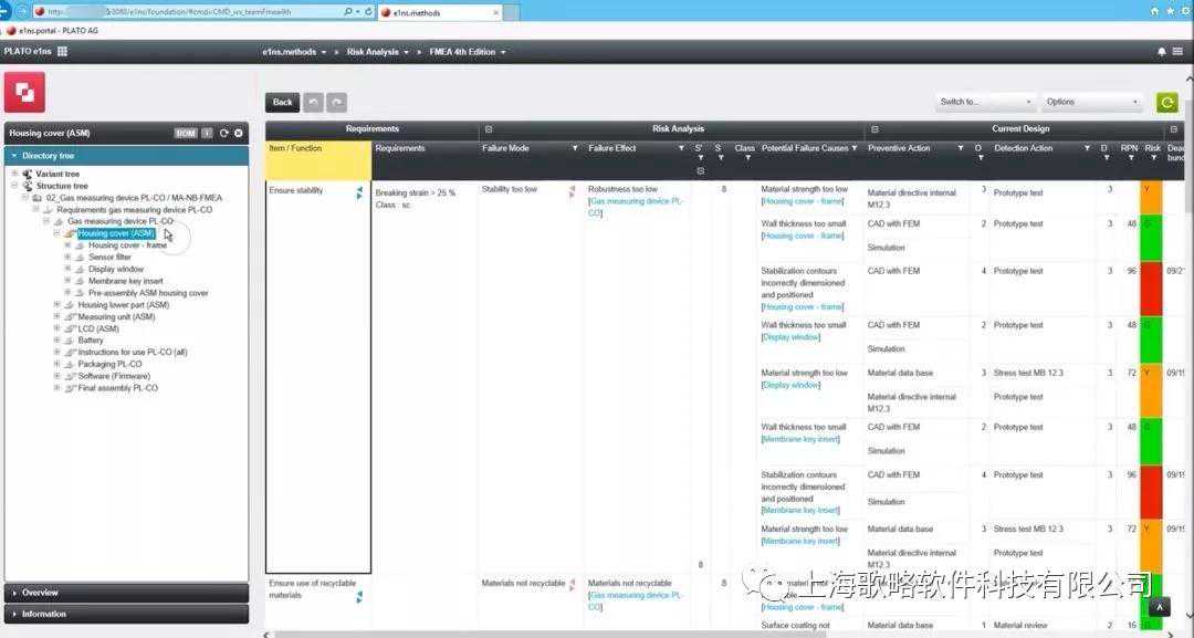 同时,RiskCloud也实现了IQ-FMEA、PLATO公司的FMEA分析功能,包括最新的AIAG和VDA标准合并后的FMEA第五版中要求的功能网和失效网的功能。