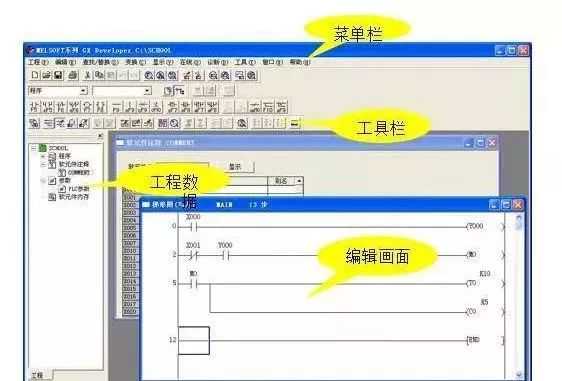 梯形图编程窗口和参数设置画面等的“树形”显示。
