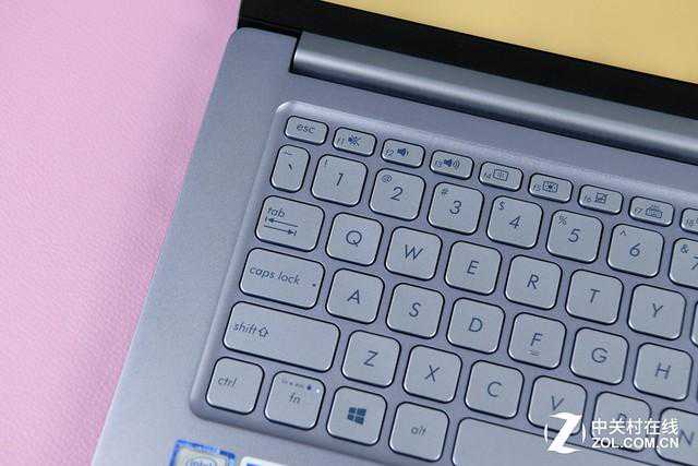 并且,adol笔记本14的键帽也比较宽大,这在一定程度上可以避免打字时的误操作,此外,键盘还支持背光,亮度有三挡可以调节,即使在较昏暗的环境下也能准确找到按键,进而提高效率。