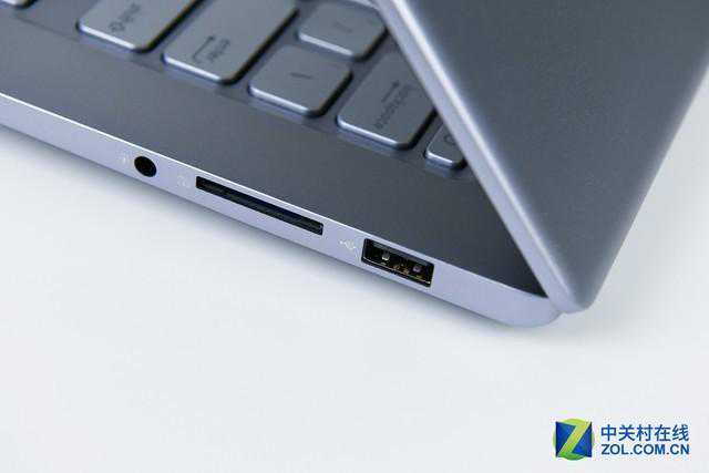 接口上,adol笔记本14相比adol笔记本13的变化不大,只有TF读卡器改成了标准SD卡读卡器,并且和耳麦接口进行了位置对调,其他接口类型、数量和位置全部保留。机身左侧依次是HDMI、、,机身右侧分别是、标准SD卡读卡器和耳麦接口。