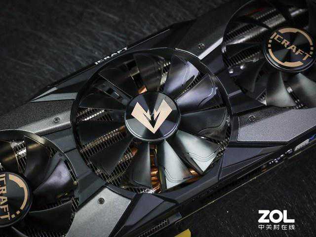 铭瑄RTX2070SuperiCraft8G显卡外观延续了电竞之心系列的设计风格,银色与黑色相间的搭配外观上非常稳重,散热方面采用3风扇设计,中间为9cm直径的大风扇,两侧各1个8cm风扇,同时扇叶经过空气动力学优化的多齿扇叶,有效提升风量。