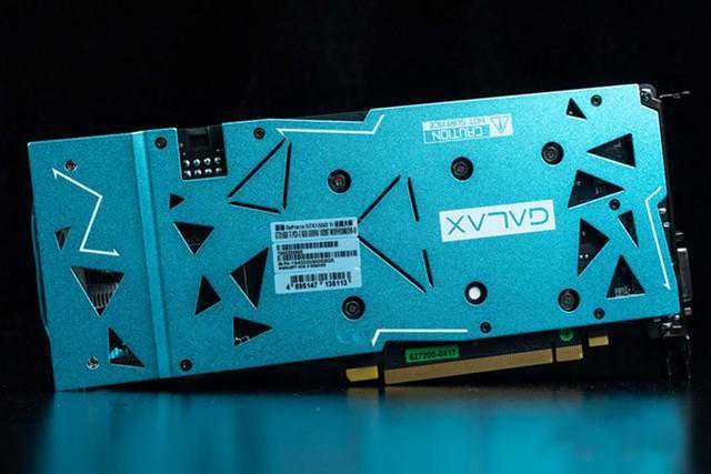 影驰GeForceRTX2070金属大师显卡背板自然也是一大特色,增加了许多规则镂空图形,采用金属材质打造,既提升了整卡颜值,又为显卡起到保护与散热的作用。背板连接PCB一面更全面覆盖了黑色绝缘层,提升整卡安全性,整个背板可以说无可挑剔。