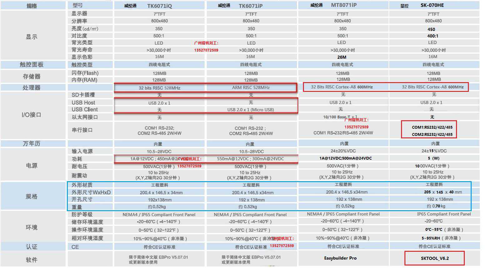 【CPU:RISCCortexA8600MHz】:威纶通MT8071IP、显控SK-070HE