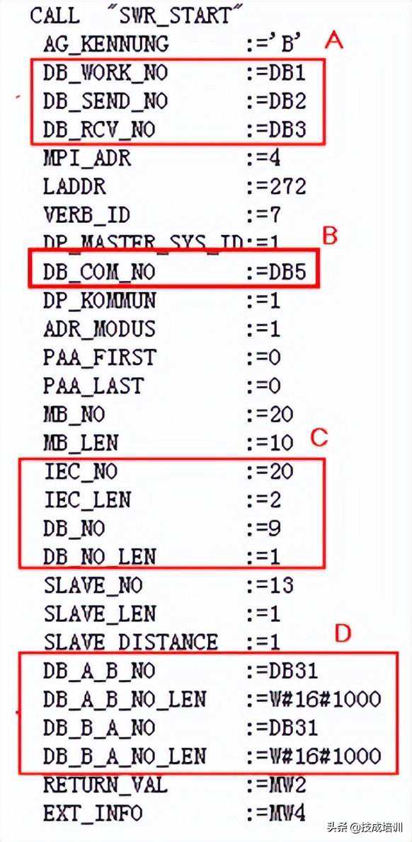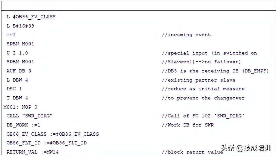 回答:软冗余系统中DB块的特定功能,在FB100"SWR_START‘中定义,如图4所示。