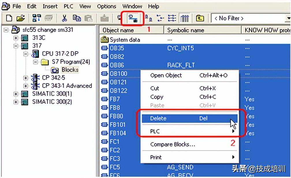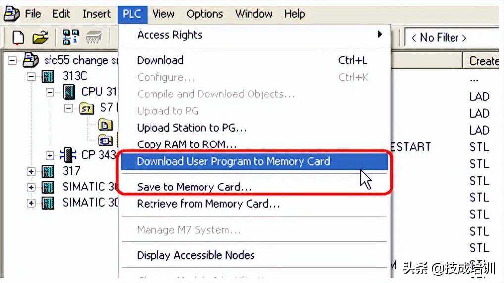 选择“Blocks”,按照图17的菜单操作下载Blocks(删除MMC卡中的所有Blocks,将新程序写入MMC卡中,并复位CPURAM)。
