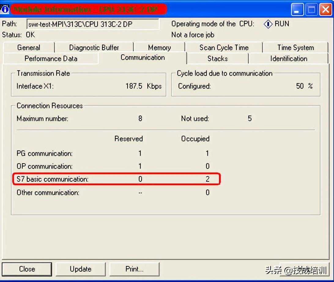 选择MPI同步时,冗余程序块调用SFC65“XSEND”和SFC66“XREV”进行数据同步,占用S7-300CPU的2个“S7基本通信”的连接资源,如图22所示。