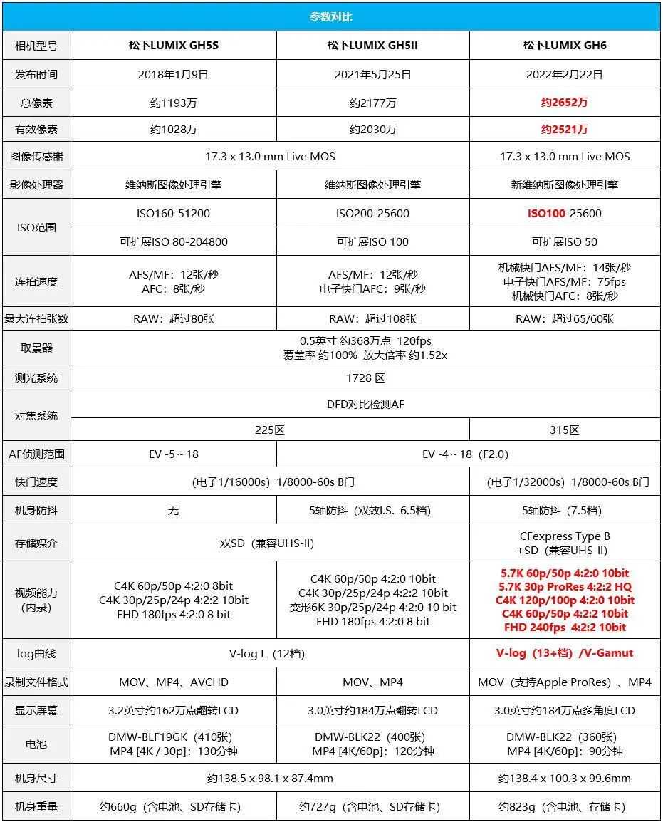 松下GH6采用轻巧耐用的镁合金全压铸前/后框架组成,机身接缝处和操作件采用密封结构,除防尘防滴设计外,还可在-10°C寒冷地区拍摄.实现耐低温设计。下面谈谈GH6相对GH5系列一些细节变化。