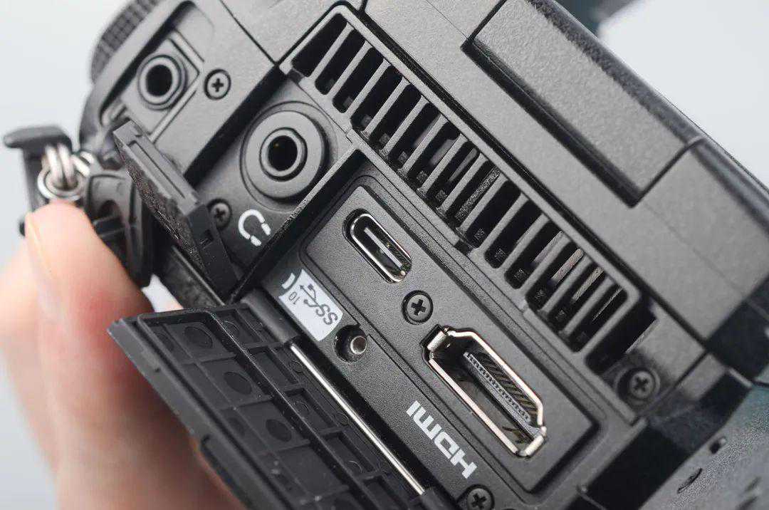 接口方面,松下GH6侧面两个胶皮盖下、从上至下分别是外置麦克风插孔、耳机插孔(返听)、HDMI、USB-C。这款相机的USB口为,可用于高速写入和读出,且支持USBPD(供电10W)。此外,这款相机还配备了HDMIA全尺寸接口,与TypeD相比,TypeA接口在多功能性和耐用性方面都更出色。