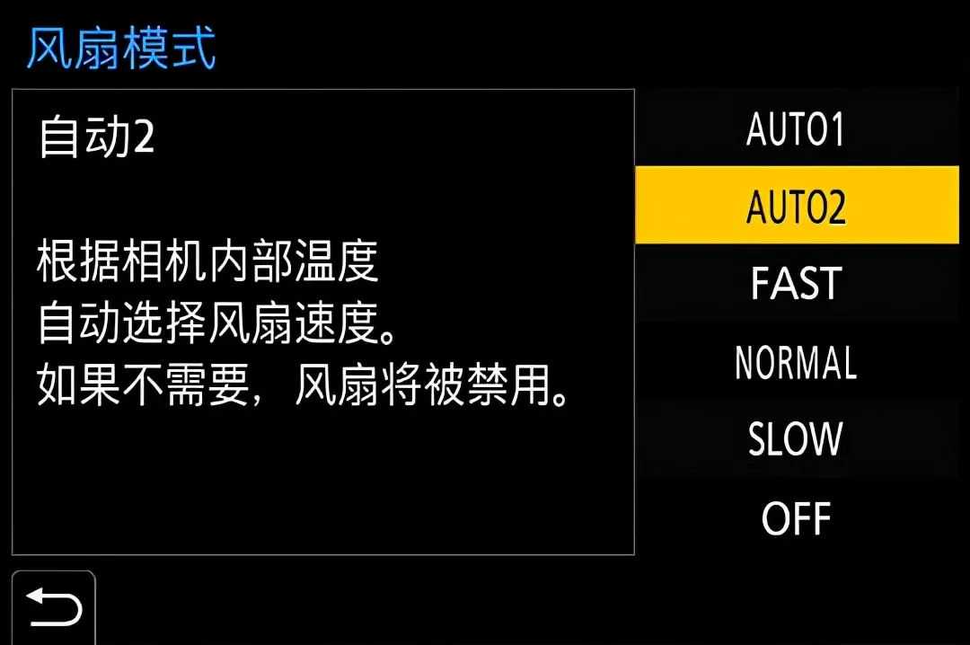 松下通过反复进行高精度的散热模拟,开发出能够最大限度地发挥风扇效果的散热结构,保证在工作温度内实现长期录像。GH6除了有风扇转速快、中、慢三挡,还有AUTO1、AUTO2两个自动挡,AUTO1是自动选择风扇速度,重点冷却相机机身,而AUTO2根据相机内部温度自动选择风扇速度,如果不需要,风扇将被禁用。默认情况下这款相机为AUTO2,实际拍摄当中该风扇噪音很小,并不影响录制。