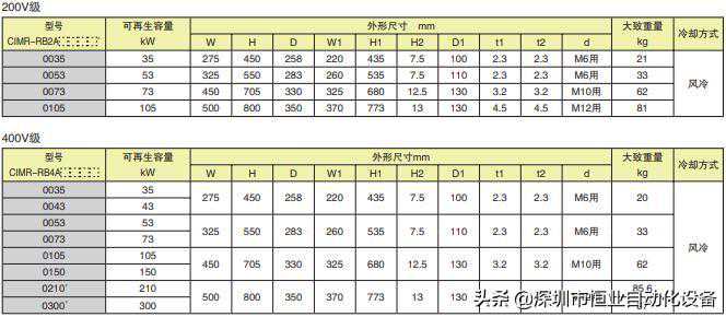 安川变频器R1000电源再生单元标准规格