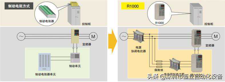 只需将制动电阻器替换为R1000,即可有效运用之前舍弃的能源。