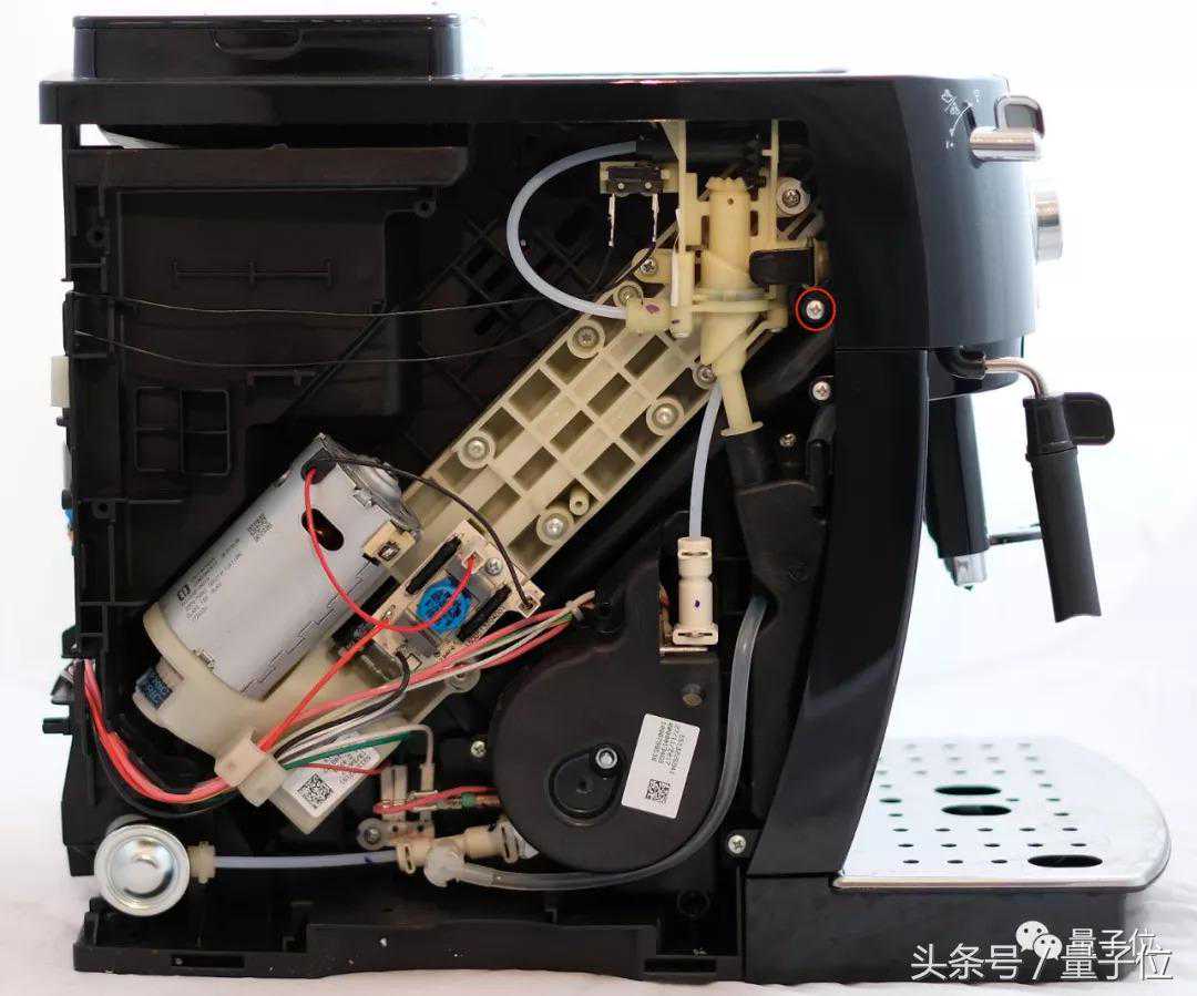 这个时候,你会发现咖啡机的“右脸颊”有一个用于固定“头盖骨”的螺丝钉,把它拧下来。“左脸颊”也有一个,同样拧下来。