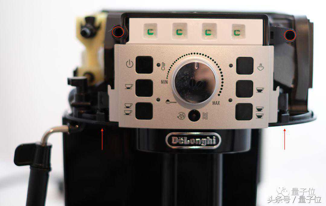 掀完之后,可以“面对”你的咖啡机正脸,把左右两侧的两个螺丝拧下来。