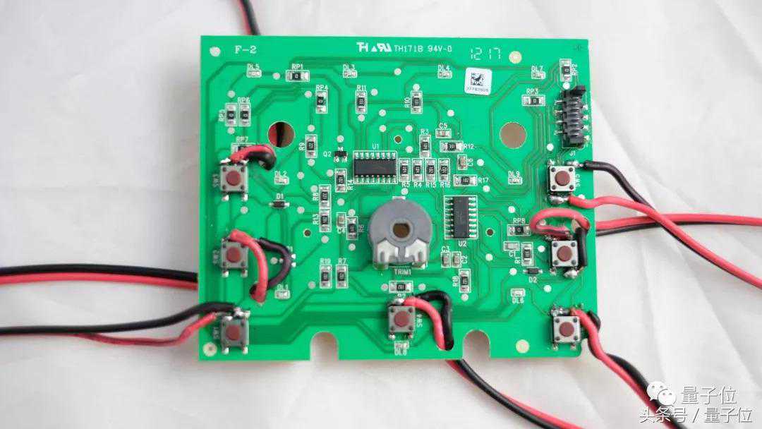 现在,拿起你的电烙铁,开始把导线焊道面板按钮下面的引脚处,面板上7个按钮分别连一对红黑导线。