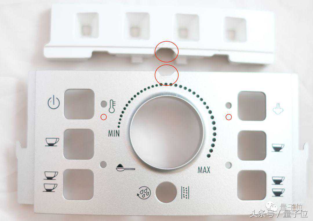 现在,在咖啡机外壳正脸的最上方中央戳个半圆的洞,也是为了过导线。