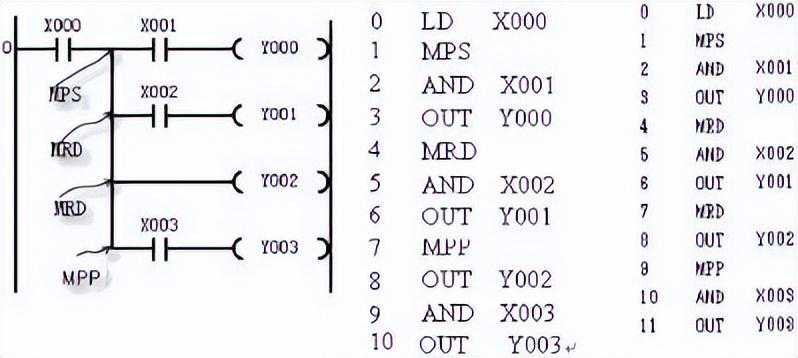 (7)在状态内,不能从STL临时左母线位置直接使用MPS/MRD/MPP。二、编程与动作,步进梯形图