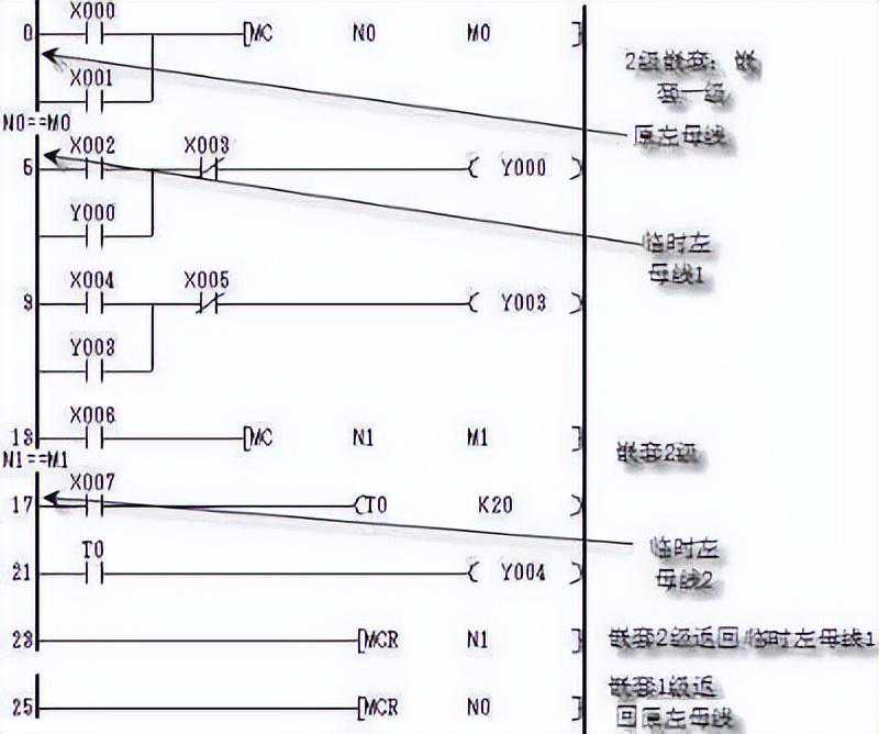 RET指令称为“不仅返回“指令。其功能是使临时左母线回到原来左母线的位置。