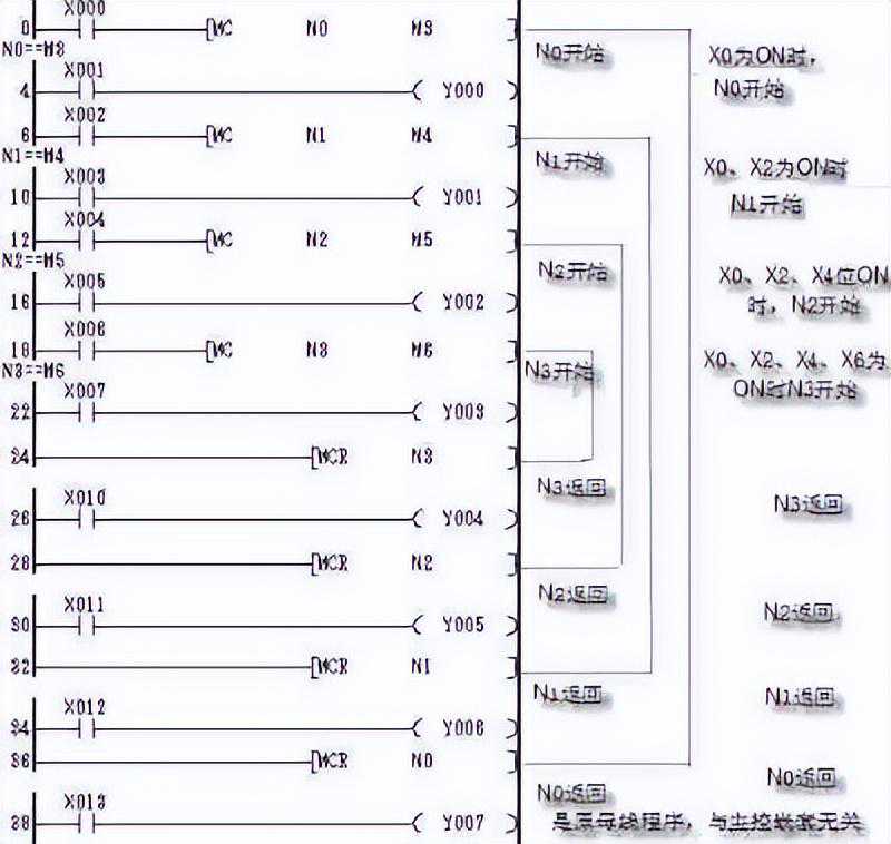 线后接一条RET指令返回原左母线,且必须有这条指令。
