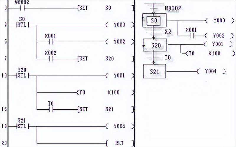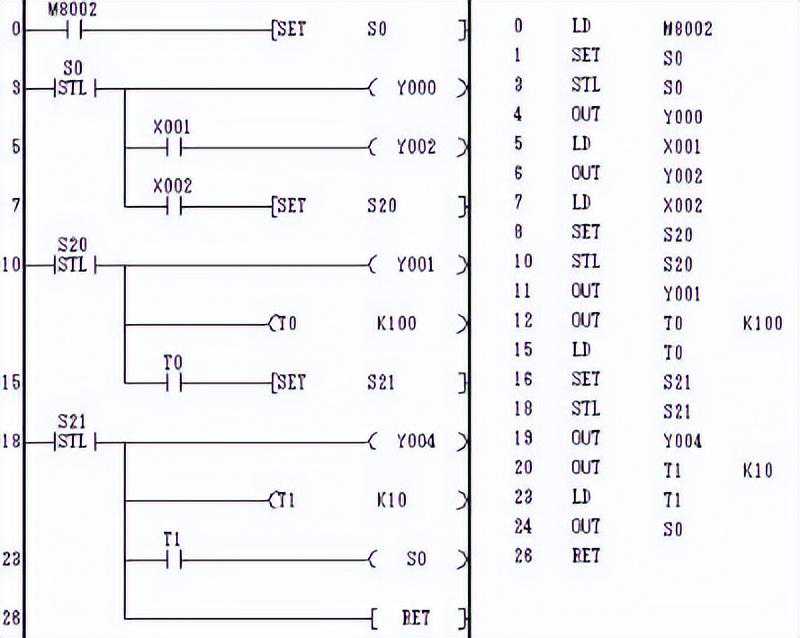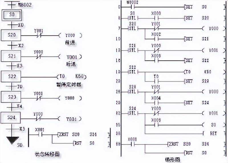 (4)转移方向:往哪个方向转移,就是SET置1的步进接点控制元件。根据上述所学知识,我们学习步进指令(STL、RET)。