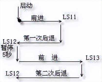 2)台车后退时,直到限位开关LS12动作,停5秒