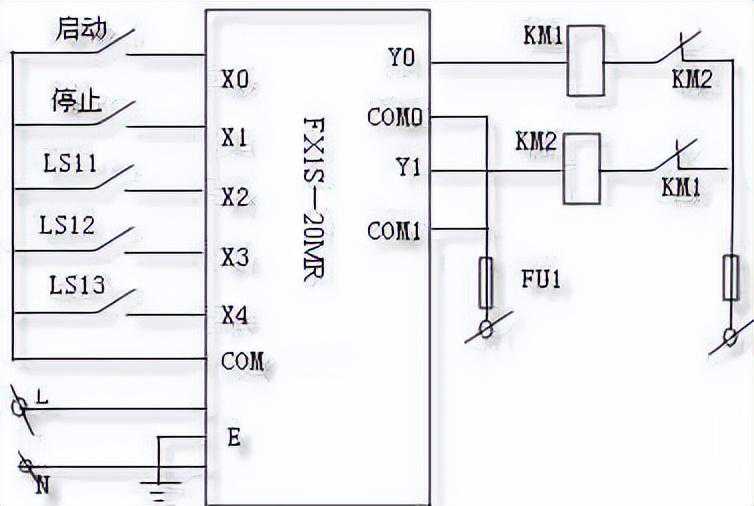 SQ2,左右极限保护开关SQ3、SQ4,输出信号Y0、Y1。具有电气互锁和机械互锁功能。