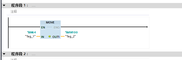 读取模拟输入值,直接将IW64(通道1)IW66(通道2)传输到数据寄存器即可。