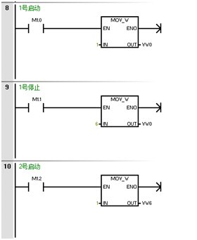 第三步:用初始化完成位延时100ms触发第一条通讯指令,内容为:将vw0的值写入1号站的地址为2000H寄存器(2000H为16进制需要转换成十进制后加40001然后转换为16进制得出16。