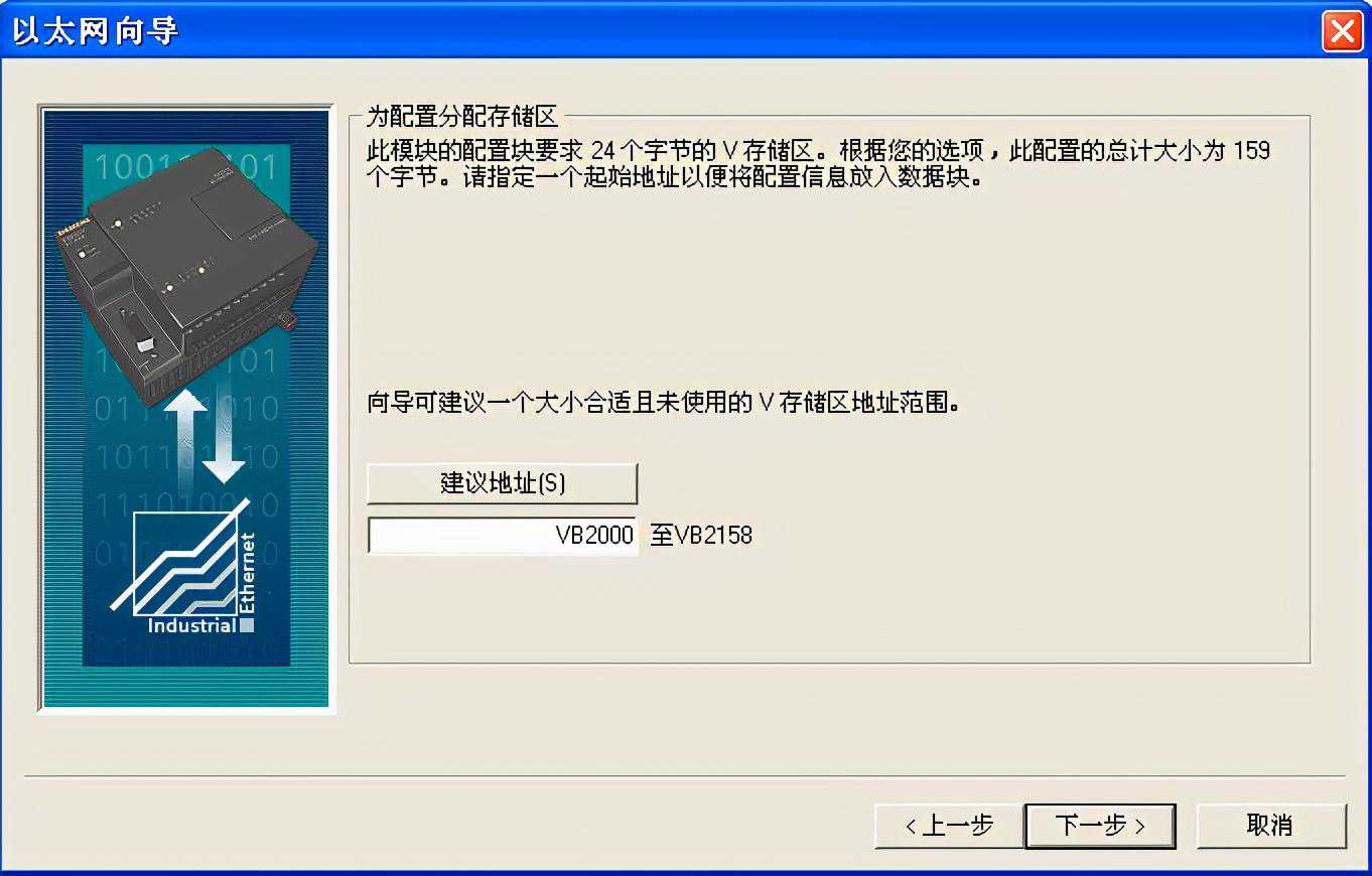 图6中会对以太网向导配置分配V存储区地址,该V区地址在程序的其它地方不能被再次使用。
