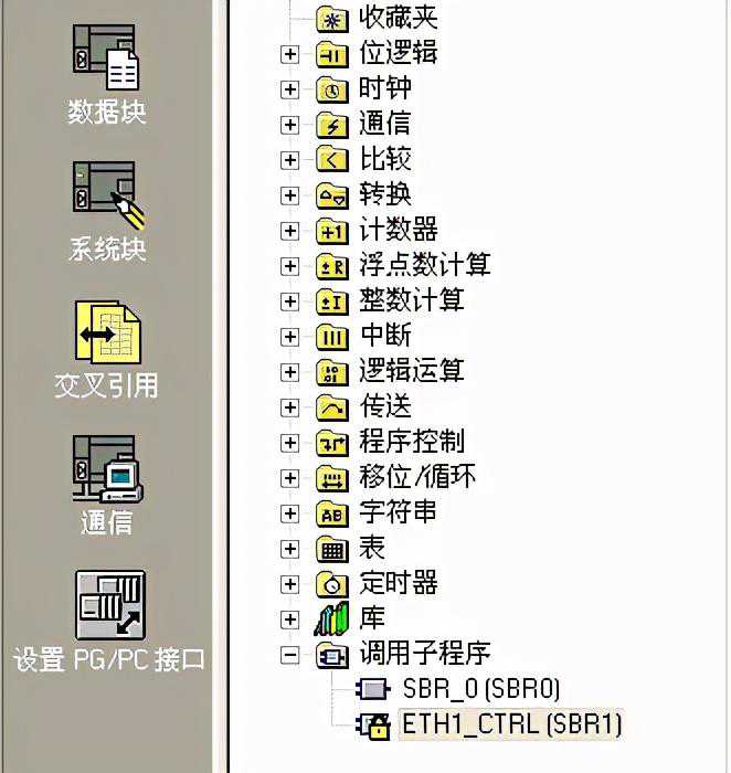 2.CP243-1模块的编程与通信当配置完以太网向导后,在调用子程序中会找到向导生成的子程序,将其调用在主程序中,如图7所示: