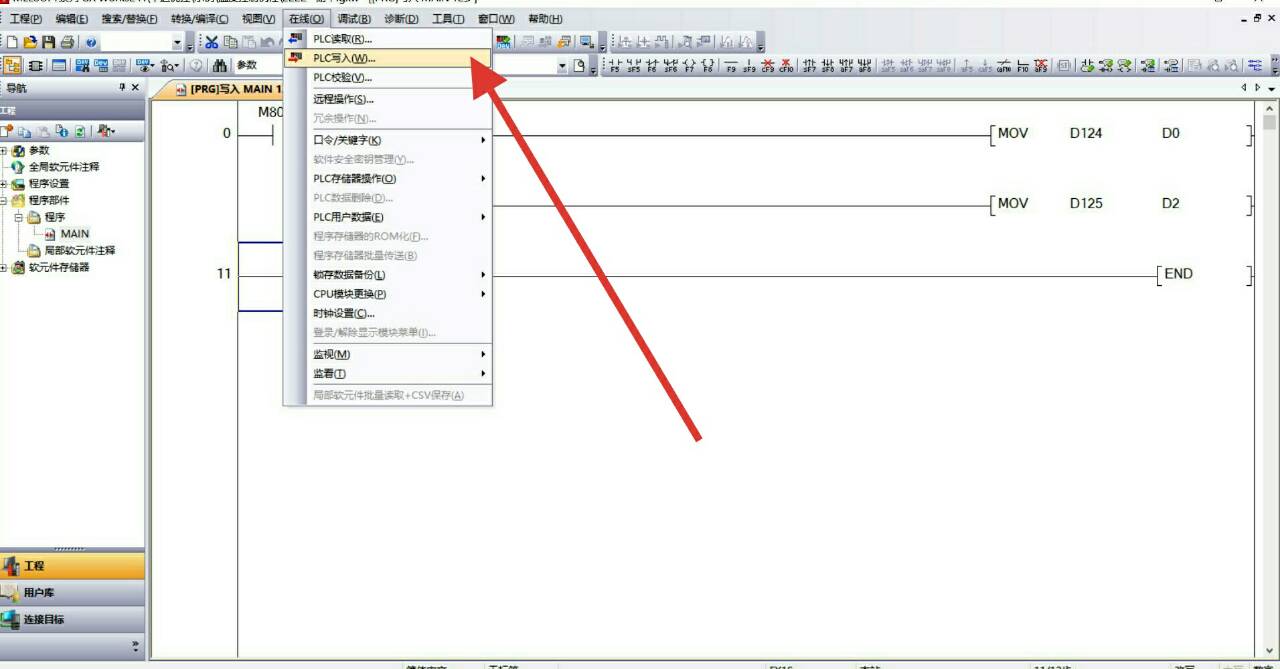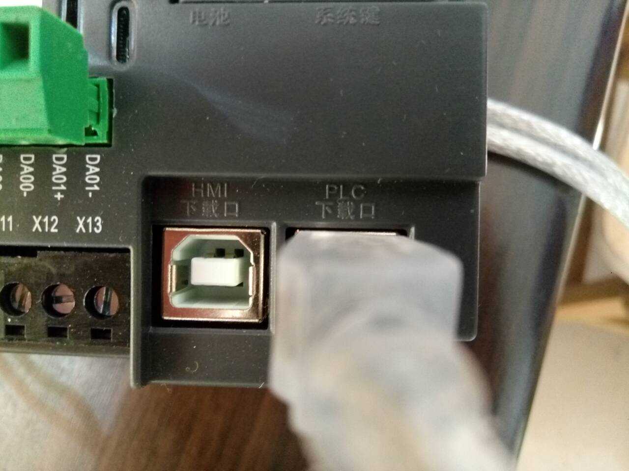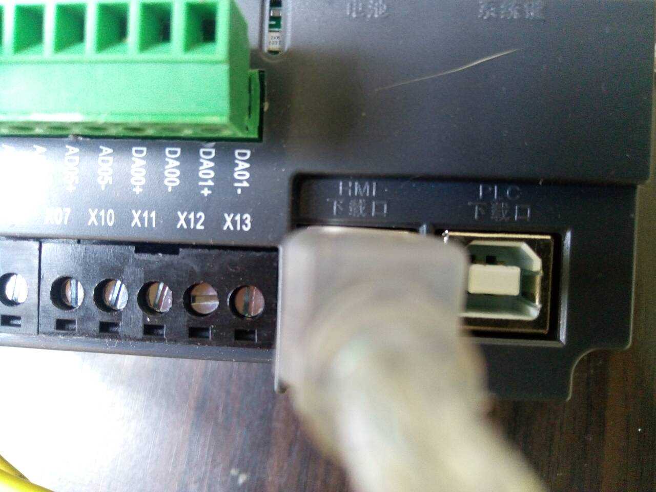 将中达优控的下载线接到PLC下载接口,同时保证PLC的RUN键是OFF状态。