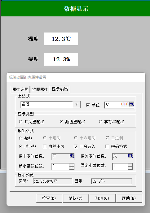实时数据库添加温度、湿度对象,数据类型位浮点型