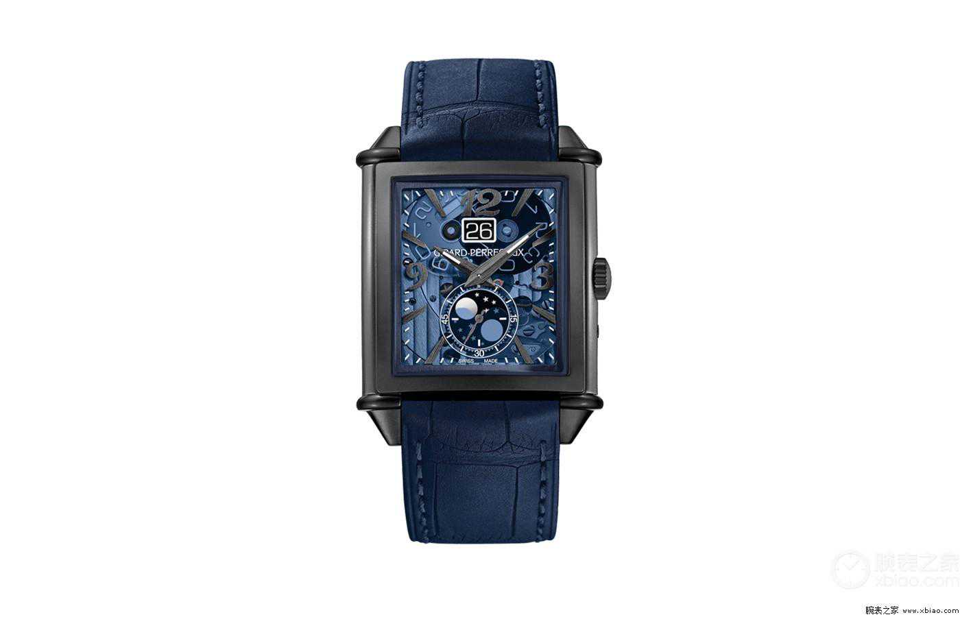 腕表点评:从弧度精致的长方形表壳,到经久不衰的太妃型指针,芝柏表Vintage1945系列腕表尽显装饰艺术的魅力。这款VINTAGE1945系列腕表无论是从哪个角度看,表壳和蓝宝石水晶玻璃表镜都展现出精美的弧形,钛金属打造的表壳,直径36.10毫米,别具个性的长方形表壳完美契合手腕弧度,出色的人体工学考量令佩戴极其舒适。腕表表盘采用蓝色作为主色调,契合19年芝柏表的主题“天际行者”,深邃又神秘。表盘上,镶贴的阿拉伯数字、小秒盘和铁轨式分钟刻度等细节设计均受到首个Vintage1945表款的启发,颇具复古感。腕表内部搭载的是品牌GP03300-0105机芯,动力储存46小时。