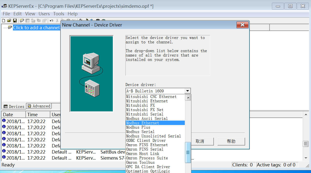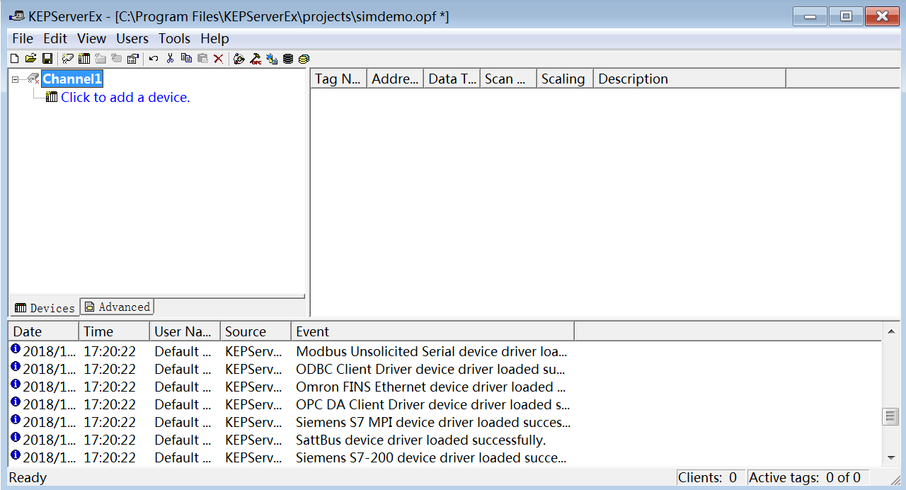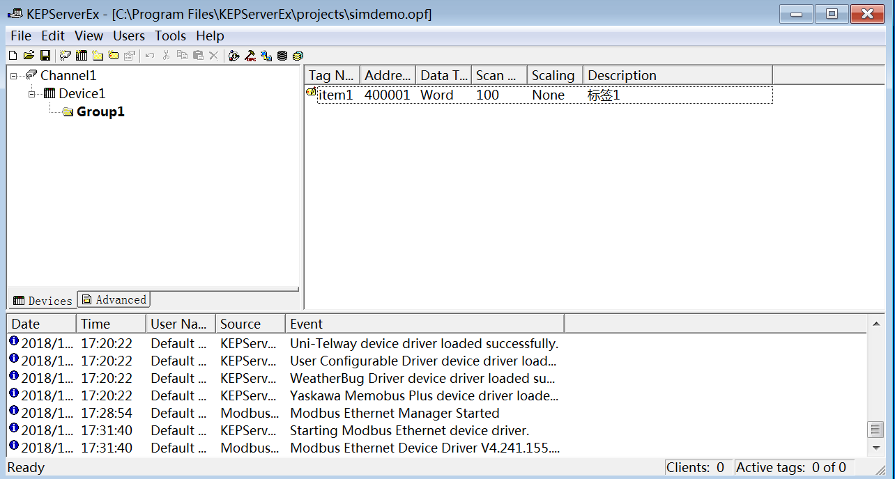 完成以上步骤,整个KEPServer软件可以说是装好,Modbus驱动已经授权完成,可以正常使用了。