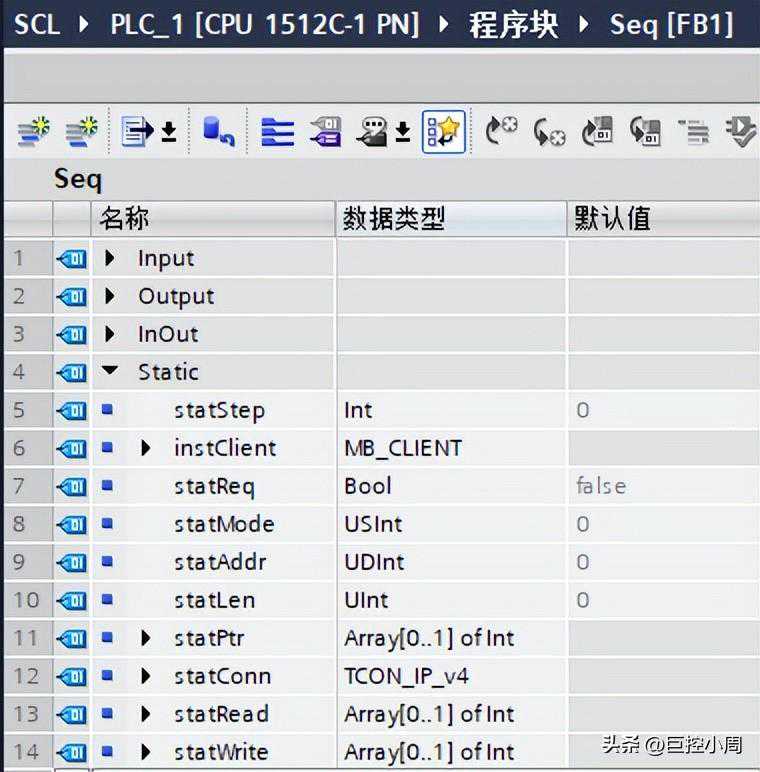 经常有客户问,在TIAPortal的SCL编辑器中,如何展示出像经典STEP7里面SCL源文件那样的文本式块接口参数,如图1所示。这种方式编辑起来更加灵活,也可以像文本一样复制粘贴。