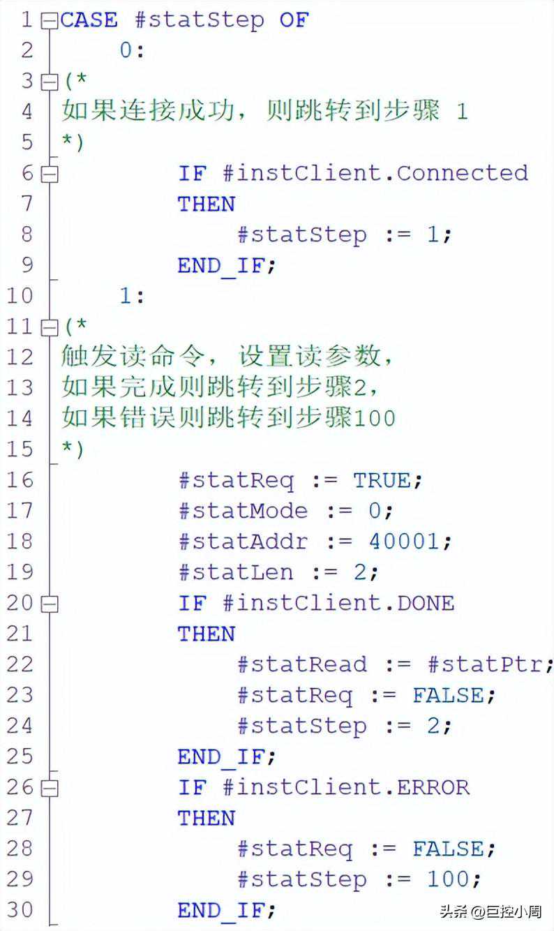 不不不,联系很大,判断某个变量为几,可以当做判断目前到了哪一步,执行某些动作,我们可以当做执行该步骤时执行的动作。除此以外,还可以在步骤中加上判断是否满足跳转条件,然后修改步骤号。这样一个简单的顺控逻辑框架就搭建起来了。