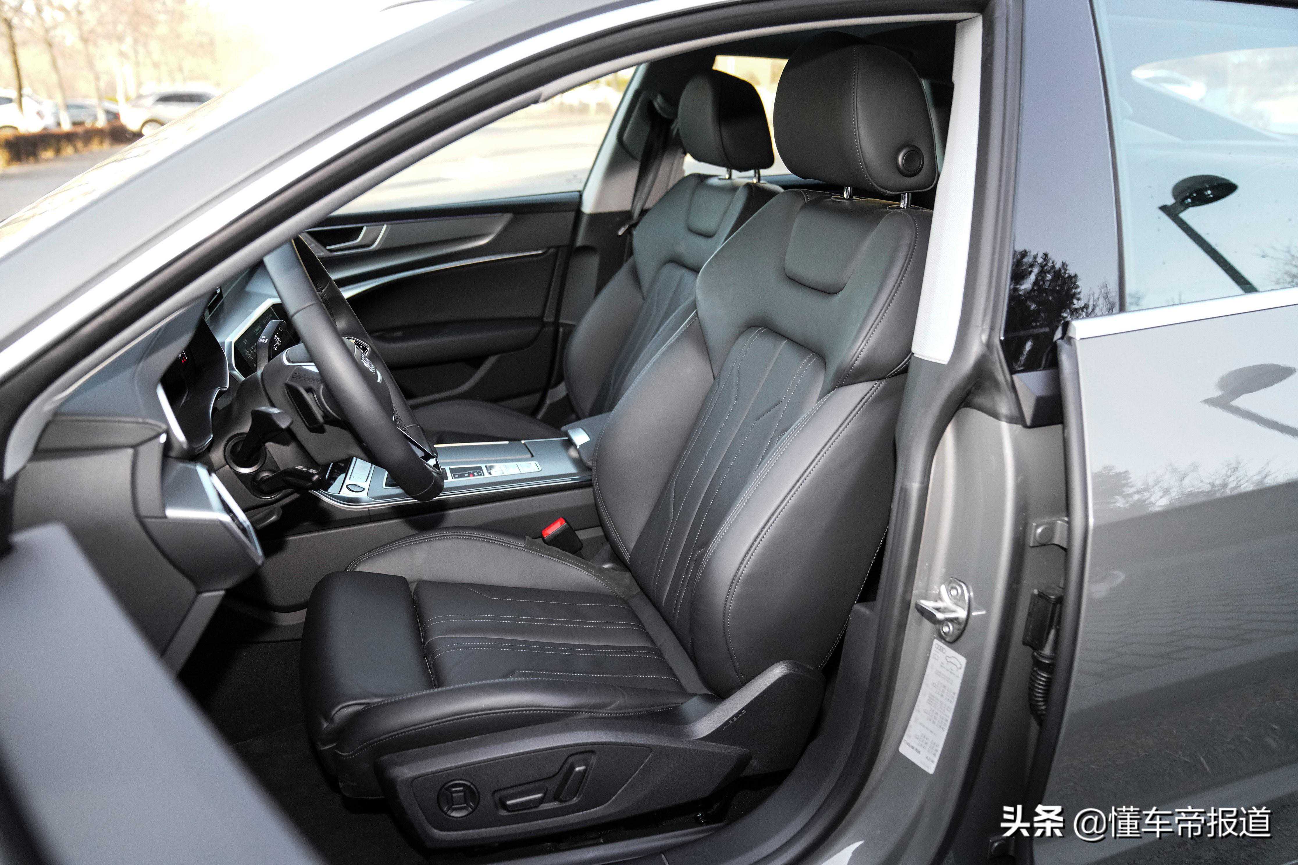 说奥迪是“灯厂”并不是开玩笑,从A7启动的那一刹那,流水式转向灯便将氛围感直接拉满。除了12颗LED光源组成的转向灯之外,前大灯组也采用了LED光源,用户可以花费1.5万元选装激光大灯,但就个人来看LED大灯已经足矣。