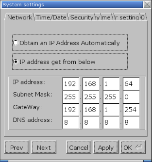 2.“IPaddress”中设定触摸屏的IP地址,例如设置为192.168.1.64,即表示此屏所在IP网段为1.地址为64