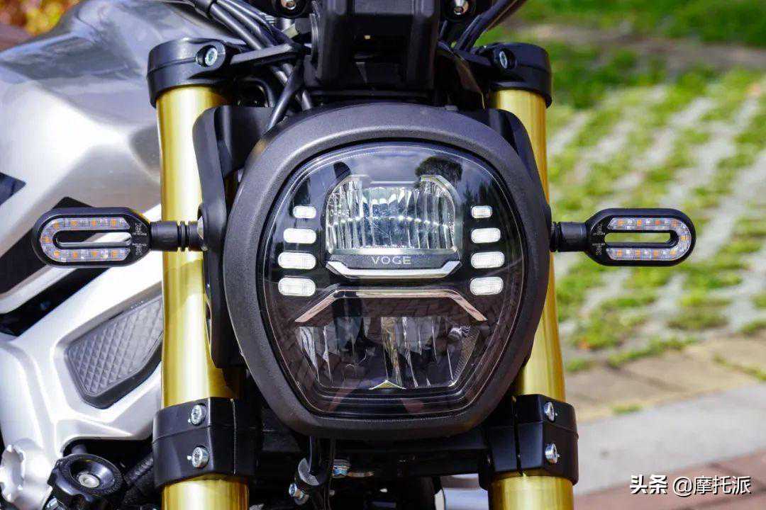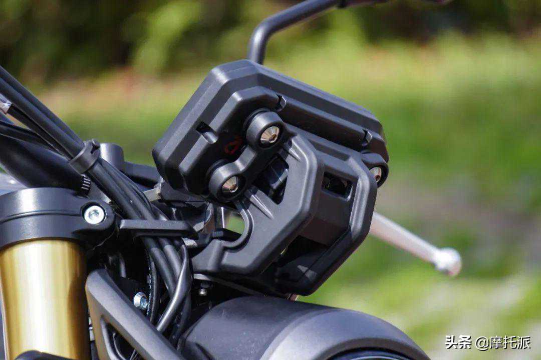 敦厚古朴的头灯灯壳内置放了颇具数码味的LED灯组,加之U型LED转向灯,以及造型较酷的仪表支架,令整个头部的样式都显得别致。