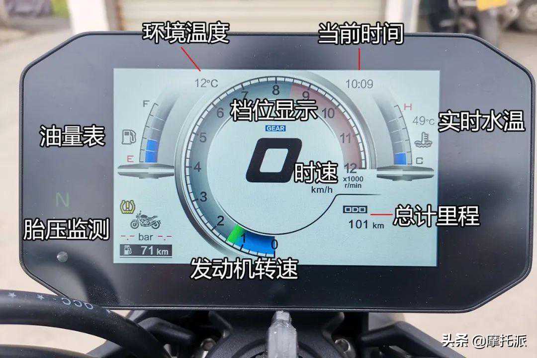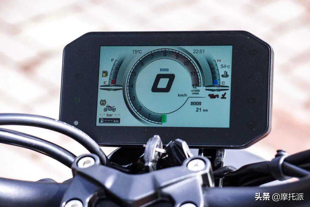 理所当然,这块TFT仪表可以根据光照来自动调整亮度和白天/夜间显示状态,屏幕表面采用雾面处理,即使背对阳光骑行,也不会因为光线反射而造成看不清屏幕情况。